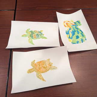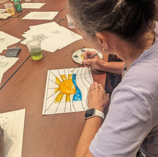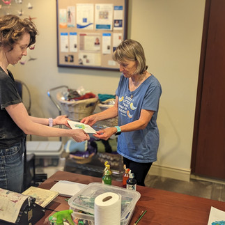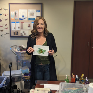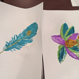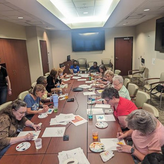 Fun night at The Hawthorne with Guest Kathleen O'Conner, Executive Director of Art On Wheels teaching the Breast Cancer Support Group the art skill of Monoprint! Check out the beautiful finished pieces of art!